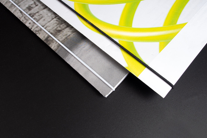 Bei der, sagen wir jetzt einfach Gummibindung, fertigen wir zuerst einen Lagenfalz. Dieser ist schon mal sehr ähnlich wie bei der Rückstichheftung. Jedoch schießen wir keine Klammern in das Produkt, sondern führen lediglich einen 3-seitigen Beschnitt durch.